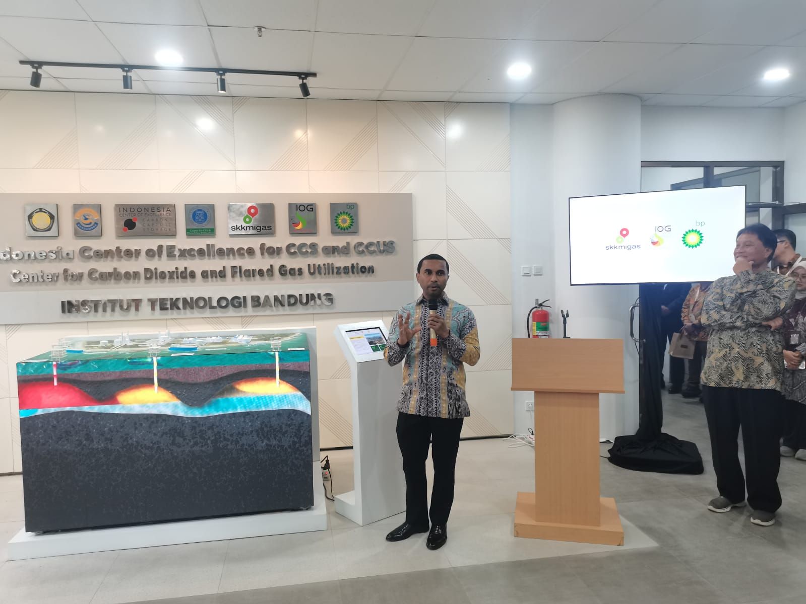 Pengesahan bantuan fasilitas untuk Indonesia Center of Excellence for CCS dan CCUS di Kampus ITB (8 Desember 2025), dihadiri oleh Djoko Siswanto (Kepala SKK Migas), Prof. Lavi Rizki Zuhal (Wakil Rektor Bidang Riset dan Inovasi ITB), Kathy Wu (Presiden Regional BP Asia Pacific), dan Noor Arifin Muhammad (Direktur Teknik dan Lingkungan Migas, Ditjen Migas, Kementerian ESDM).